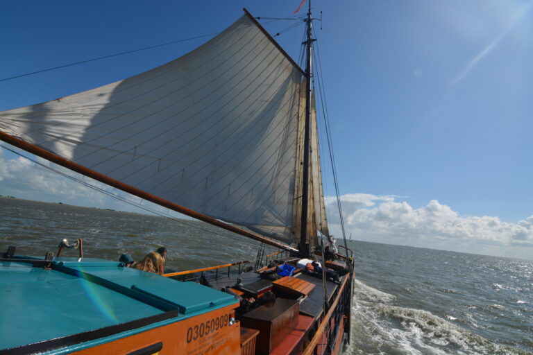 Dann komm an Bord des traditionellen Segelschiffs Catharina van Mijdrecht und erlebe einen Segelurlaub für junge Leute und Studenten auf dem Wattenmeer.